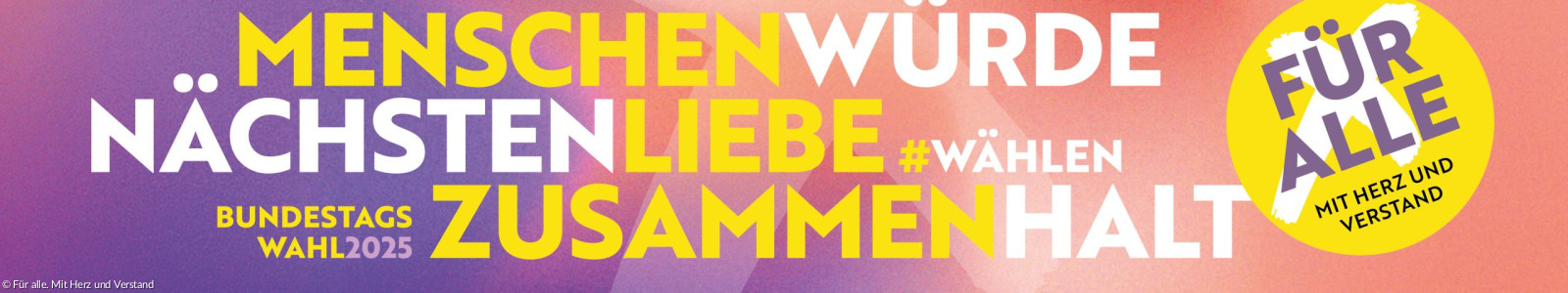 Die EKD und die katholische Kirche haben die Kampagne „Für alle. Mit Herz und Verstand“ zur Bundestagswahl gestartet. Diese breite ökumenische Initiative macht die Stimme der Kirchen nach außen hör- und sichtbar.